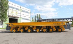 Высота платформы тяжеловоза составляет 1,6 м и при необходимости может регулироваться. На машине установлены мощный двигатель Cummins, современные системы торможения, пожаротушения и автоматической смазки. Шасси оснащено семью осями, на которых установлено 28 цельнолитых шин «суперэластик». Такие шины не требуют технического обслуживания и имеют повышенный срок эксплуатации.