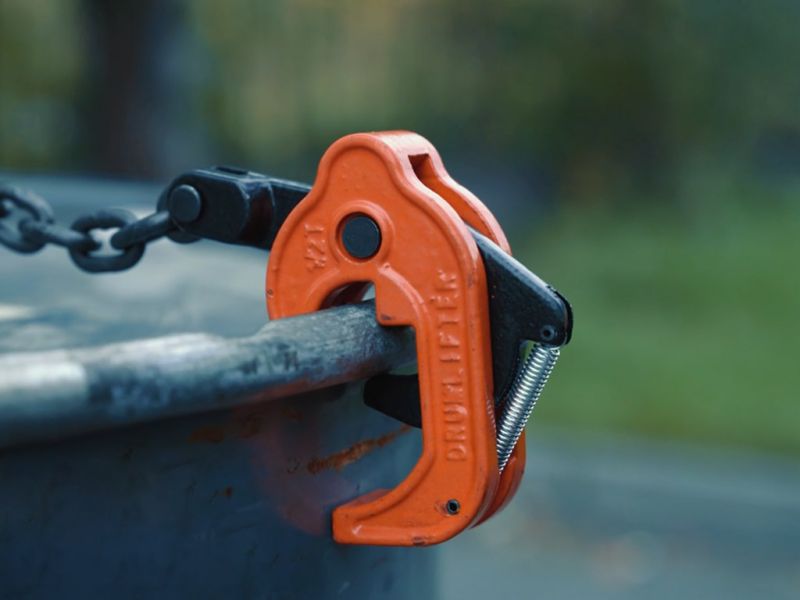 Масса захвата составляет всего 3.6 кг, что облегчает его перемещение и хранение. Этот универсальный захват может применяться для подъёма разных типов бочек, как в условиях склада, так и на открытых площадках.