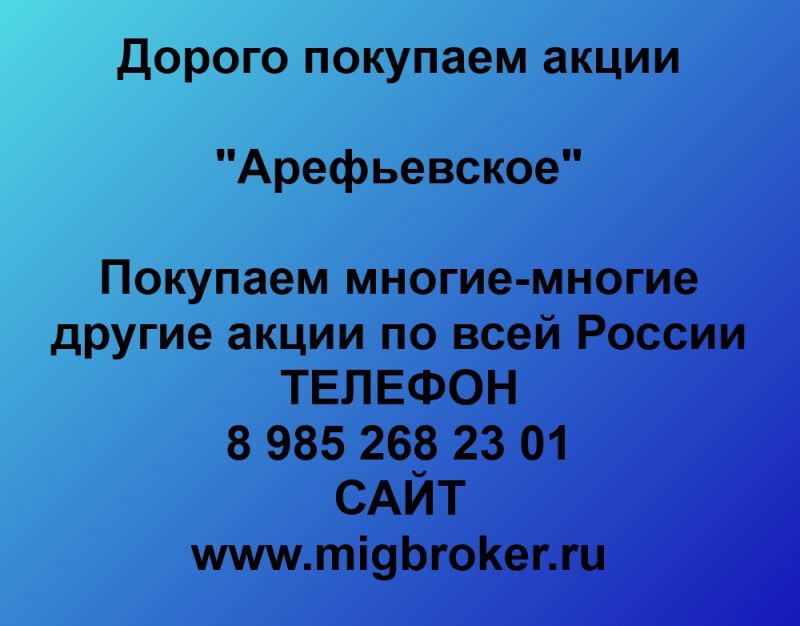 Покупаем акции Арефьевское и любые другие акции по всей России Покупка акций Арефьевское в любом городе У нас лучшая цена акций...