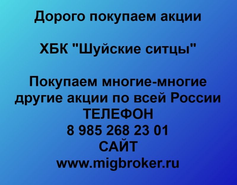 Покупаем акции ОАО ХБК Шуйские ситцы и любые другие акции по всей России