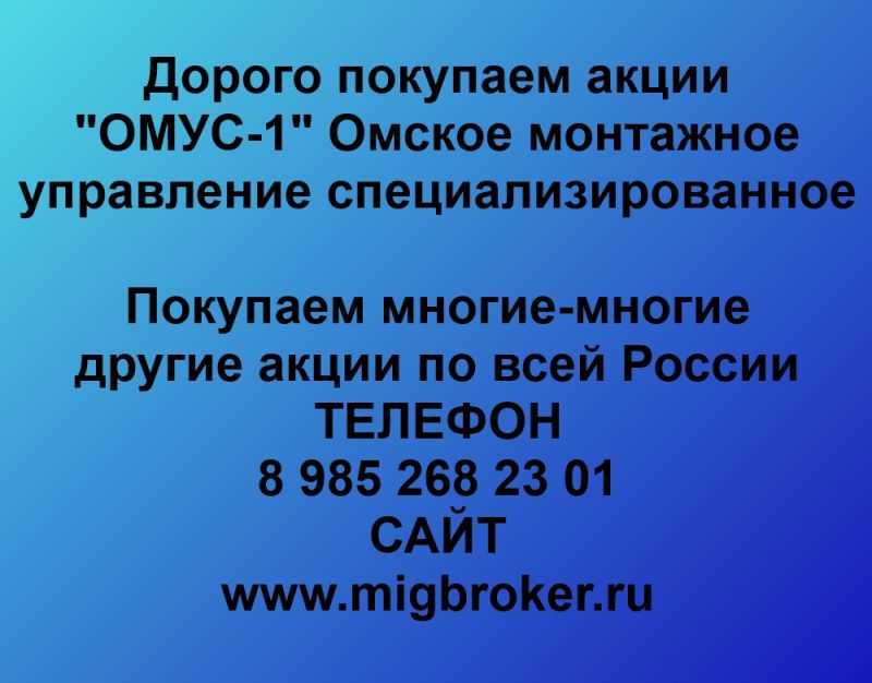 Покупаем акции «ОМУС-1» и любые другие акции по всей России Покупка акций ОМУС-1 в любом городе У нас лучшая цена акций...