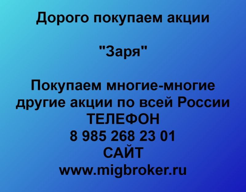 Покупаем акции «Заря» и любые другие акции по всей России Покупка акций Заря в любом городе У нас лучшая цена акций...