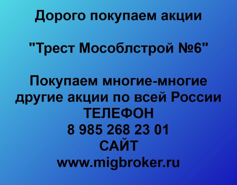 Покупаем акции «Трест Мособлстрой №6» и любые другие акции по всей России