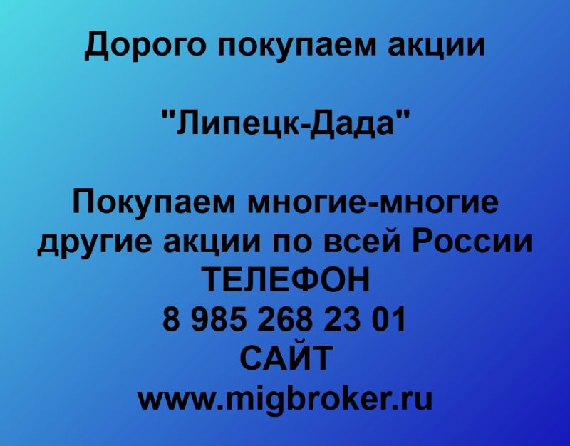 Покупаем акции ОАО Липецк-Лада и любые другие акции по всей России