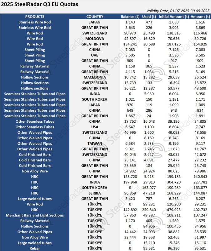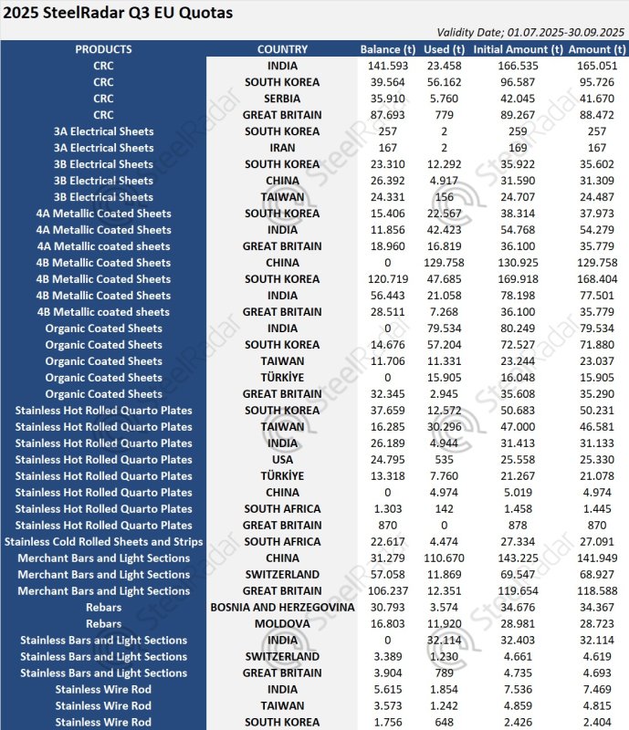 Згідно з даними, зібраними SteelRadar Європейською Комісією, в той час як більшість країн проявляли обережність у використанні своїх квот в цілому, Китай, Індія і Туреччина продемонстрували високі показники в окремих категоріях.